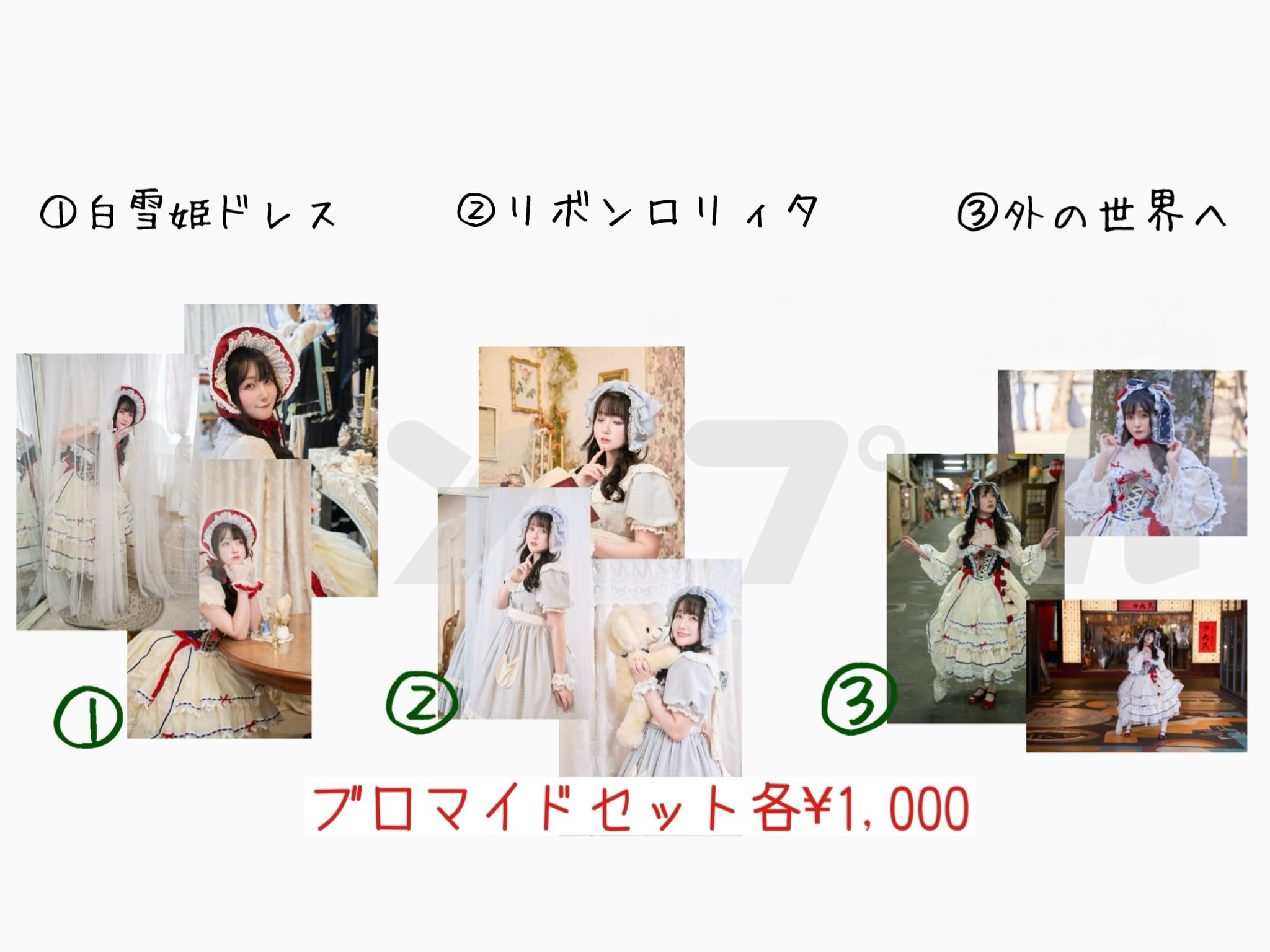 白雪姫のようなドレスと可愛らしいボンネット を着けた、お人形のようなショットたち